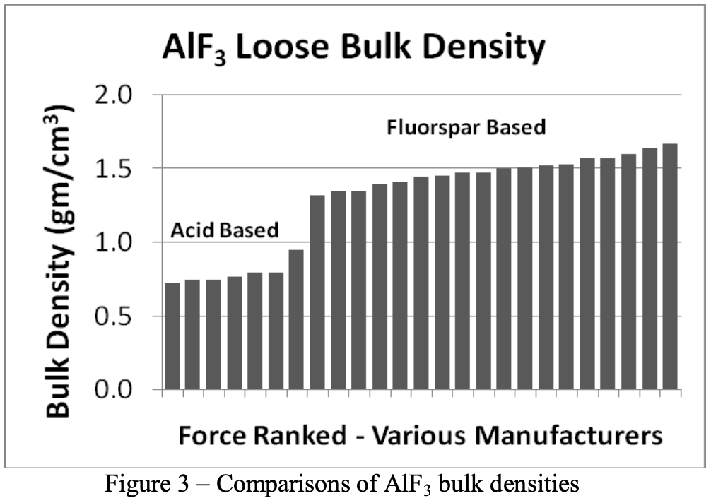 NOTE: Please note the above conclusions are taken from a 2010 Paper comparing two methods of Alufluoride production - Wet vs Dry Process & a samples from suppliers of LBD & HBD ALF.
