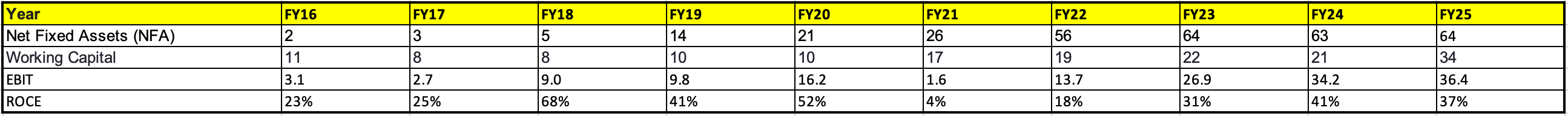 The co’ consistently earns a high return on capital employed. Note, Current Work in Progress numbers are not taken into consideration for the purpose of this calculation.