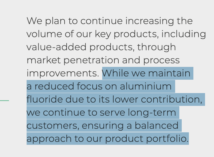 This would mean Alufluoride SHOULD BE LOOKING TO EXPAND CAPACITIES AGGRESSIVELY. The challenge here is getting adequate FSA (Acid) supply.