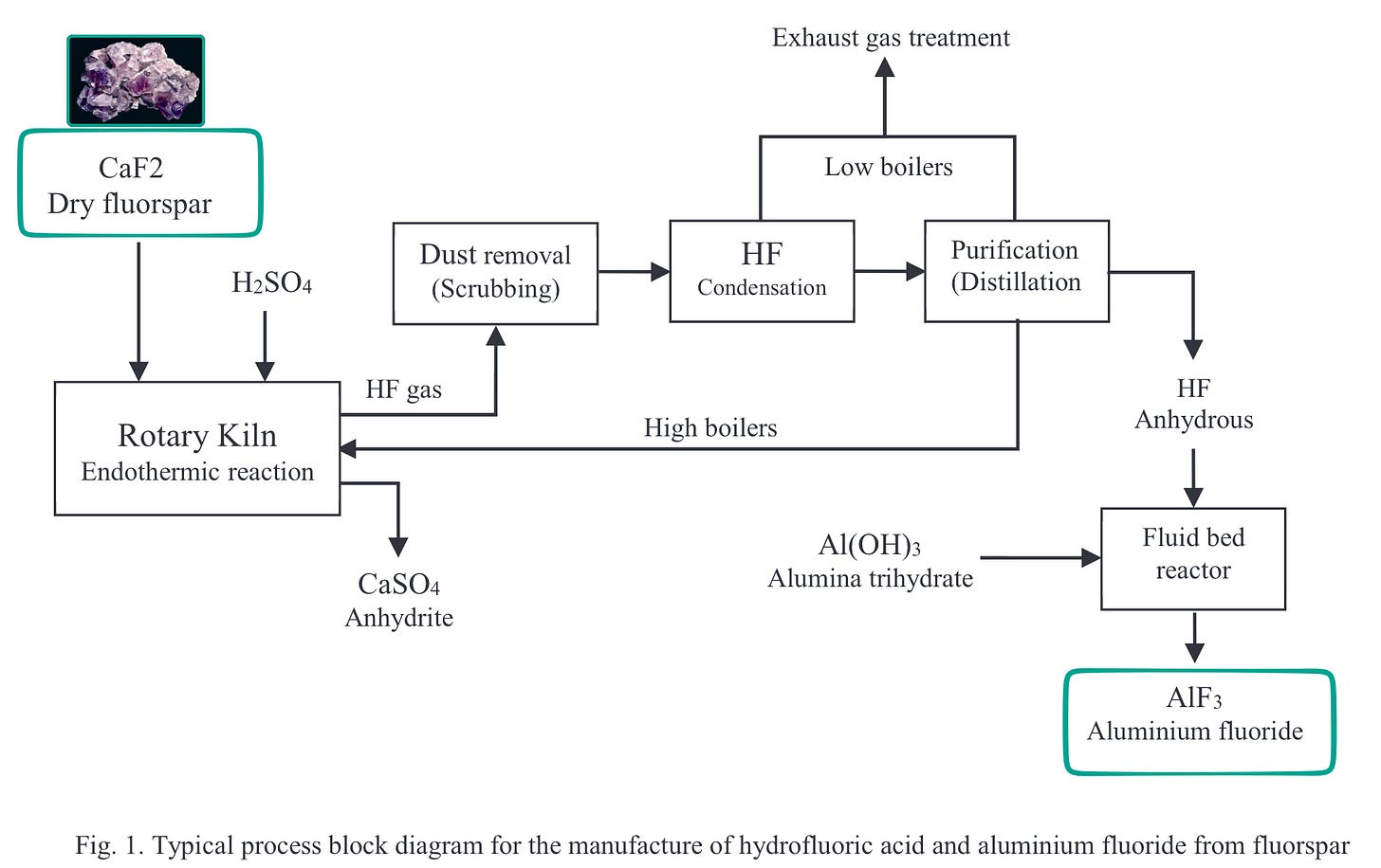 This method requires mining fluorspar. It accounts for ~80% of the Global ALF production.